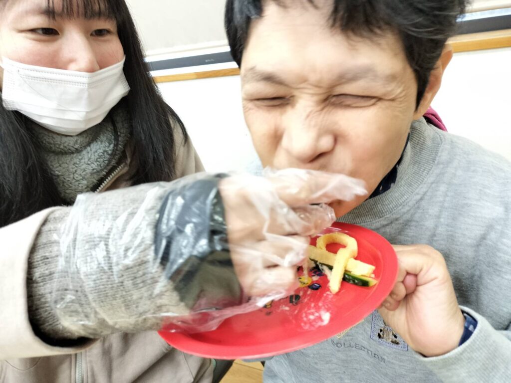 各グループで出来上がった後は、恵方巻とお味噌汁を美味しくいただきました。仲間に感想を聞くと、「美味しかった!」「ちょっと難しかったな」「また来年もやりたい!」などたくさんの感想が聞けました。